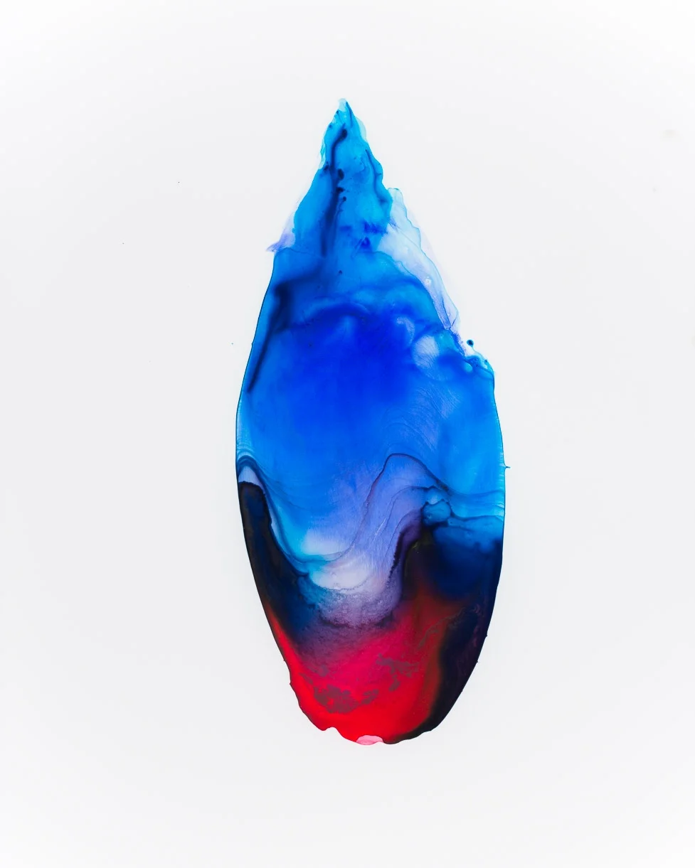 CMCC: This one is called The Thick Red Sea. The concepts of red and blue that I am working with are symbols of spirituality. Red being blood and physicality. Blue being water and spirituality. Visible realm and invisible realm. The Thick Red Sea, like the Bible story on the Red Sea, is this moment where the physical and the spiritual are intertwined. The sea is parted and Moses and the people have to walk straight into it. It is a moment of spiritual reckoning that is also very physical. I think about that with the human body. There can be moments where we are extremely aware of the invisible realm (blood as a life force). I create different shapes, colors, and symbols that are specific stories I want to tell.