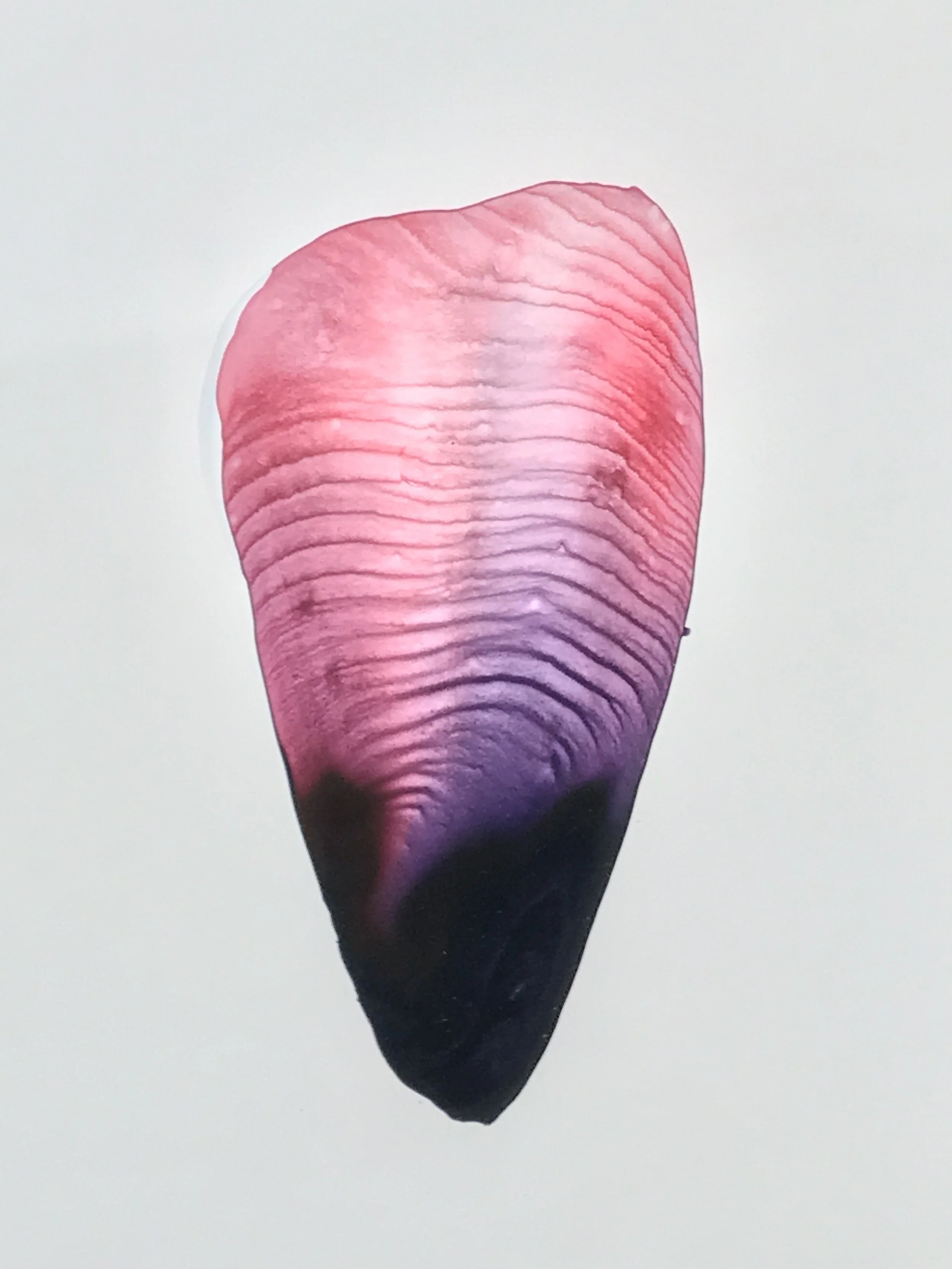 CMCC: These are all hand painted with acrylic on polypropylene. Some people say they look like photographs or digital creations but no, they are all painted with a paintbrush in my studio. Polypropylene isn't paper at all, it's actually plastic! The material is ultra smooth and nonabsorbent. What you see is a chemical process that I developed: the acrylic paint (with its plastic binder) fuses with the plastic paper and as the water evaporates off the surface, the color pigment sits on the surface. That's why they're so vibrant. If these were watercolor paintings, the work would be very dull. Also because polypropylene is so smooth, I can create these super delicate lines.