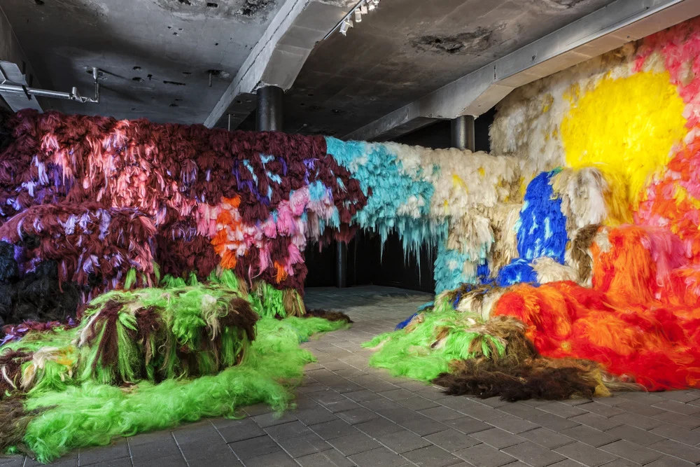 "Hrafnhildur Arnardóttir / Shoplifter is an Icelandic artist living in New York. She creates sculptures, wallmurals and installations with various materials, most notably human- and synthetic hair. Shoplifter use of fiber and found objects take on themes relating to vanity, self-image, fashion, beauty and popular myths, often touching on notions that come close to obsession or fetish.