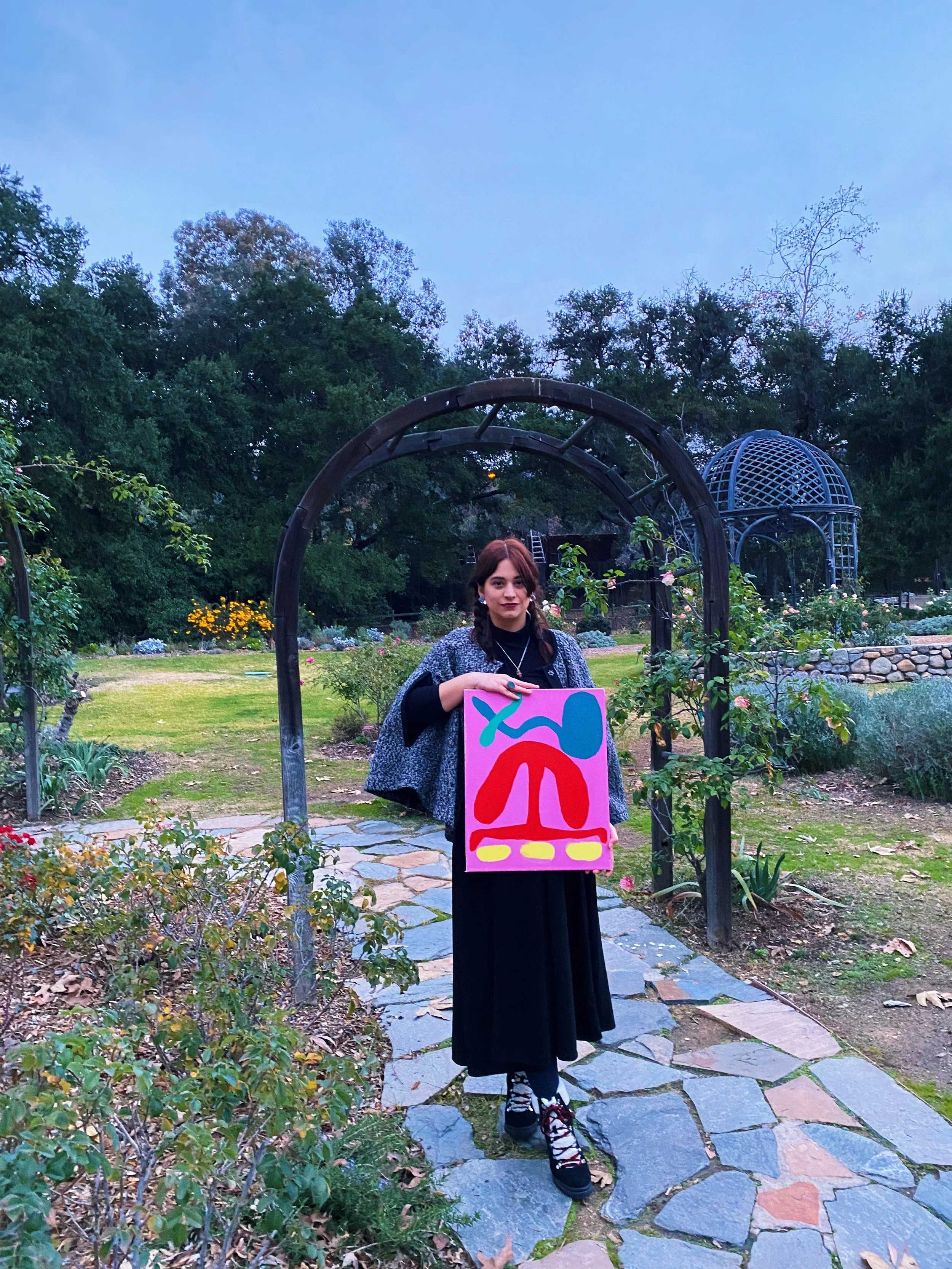 Acrylic paint on stretched canvas. Framed. Measured in inches.